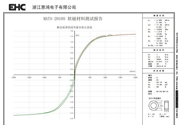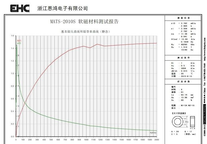 | การซึมผ่านสูงสุด μm | การดึงดูดความอิ่มตัวของแม่เหล็ก Bs (ท) | การบีบบังคับ Hc (เช้า) | คงเหลือ (ท) |